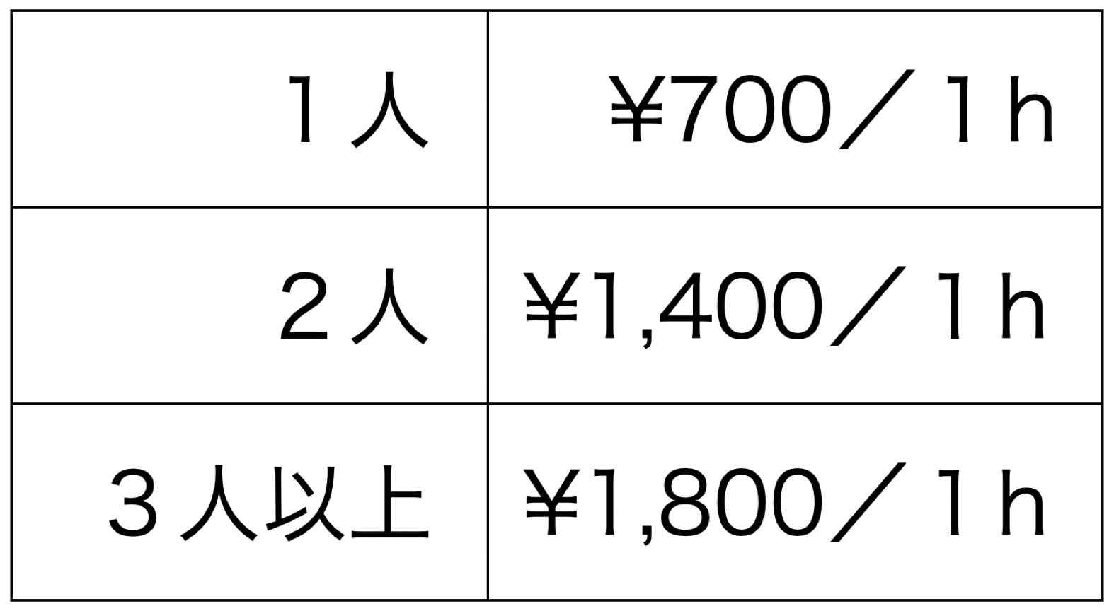 改訂後の料金:1人700円、 2人1,400円、3人以上1,800円/1時間